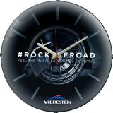 Duidelijke wandklok met gebold echt glas. Geheel te bedrukken wijzerplaat.