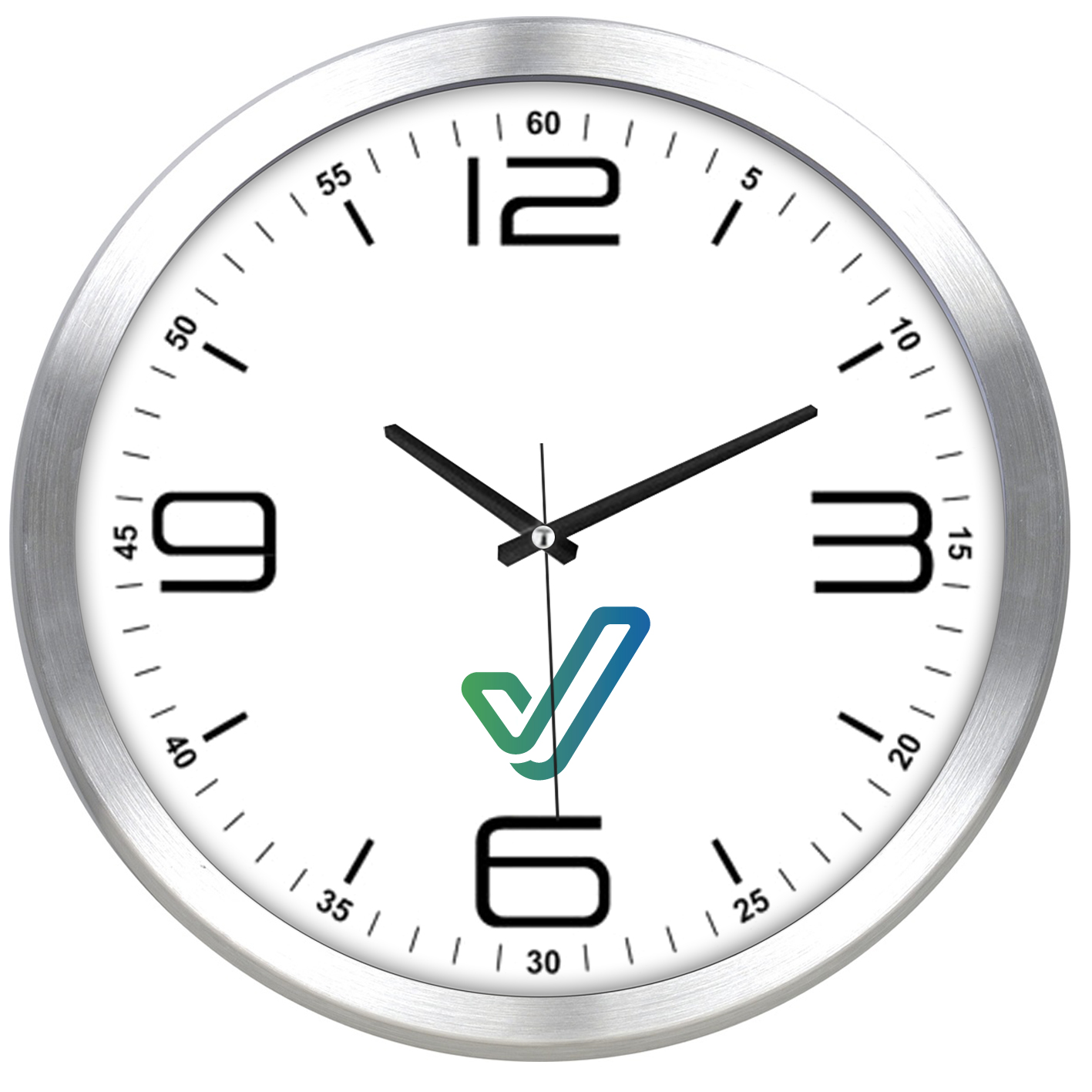 Aluminium wandklok 29,5cm. Geheel te bedrukken wijzerplaat.